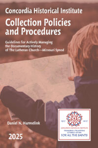 Concordia Historical Institute Collection Policies and Procedures Handbook provides an example to the various archival entities of the Synod, be they district, educational, or congregational, as to how an archive can be organized. It also provides suggested policies and procedures to govern the archives.